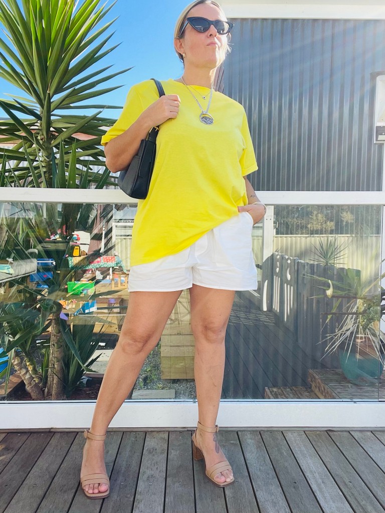 That sounds like a lovely summer outfit! A bright yellow shirt paired with white cotton shorts and tan heels would create a fresh and vibrant look. It’s great for warm weather and can be perfect for a summer outfit blog page on the Stylish Insider. The combination of yellow and white will create a cheerful and stylish ensemble. Don’t forget to accessorize with complementary pieces like sunglasses or a statement necklace to complete the look!