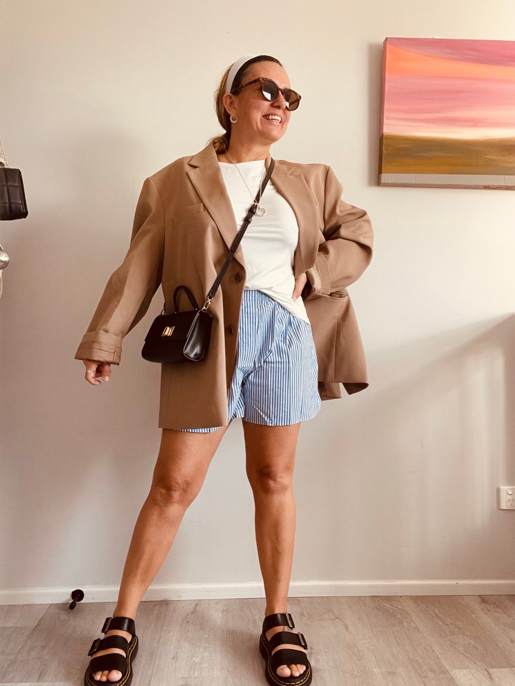 To master the art of wearing men’s boxers with oversized latte blazers, consider the following styling tips: