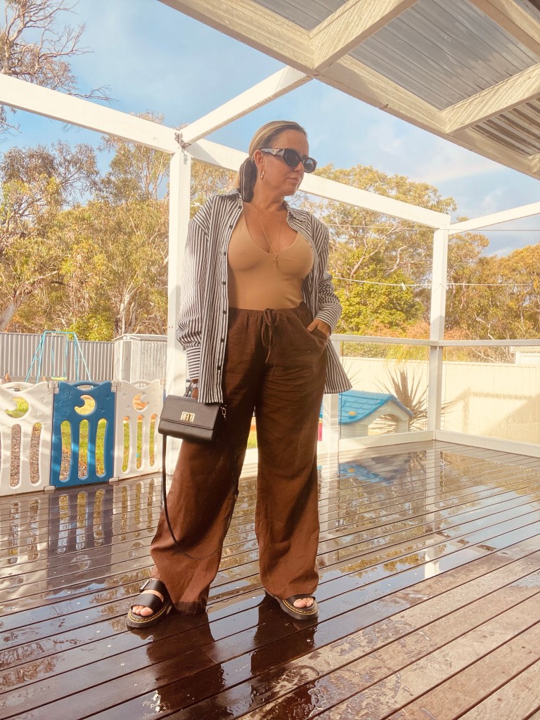 Summer fashion is all about staying comfortable and stylish, and there’s no better way to achieve that than with breezy linen clothing. In this post, we’ll explore two fabulous looks featuring brown linen pants and white linen shorts, paired with a beige bodysuit, a striped shirt at the top, and elegant footwear. Let’s dive in!
