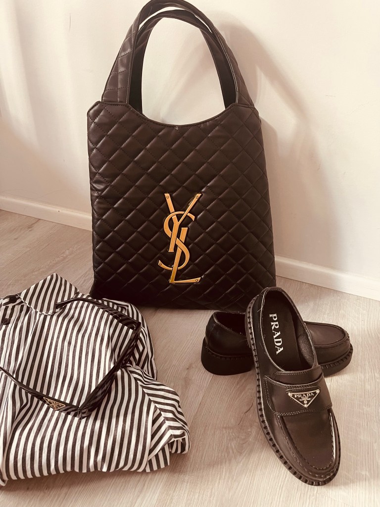 • Elevate the look with a pair of classic Prada loafers, adding a touch of sophistication to your ensemble.